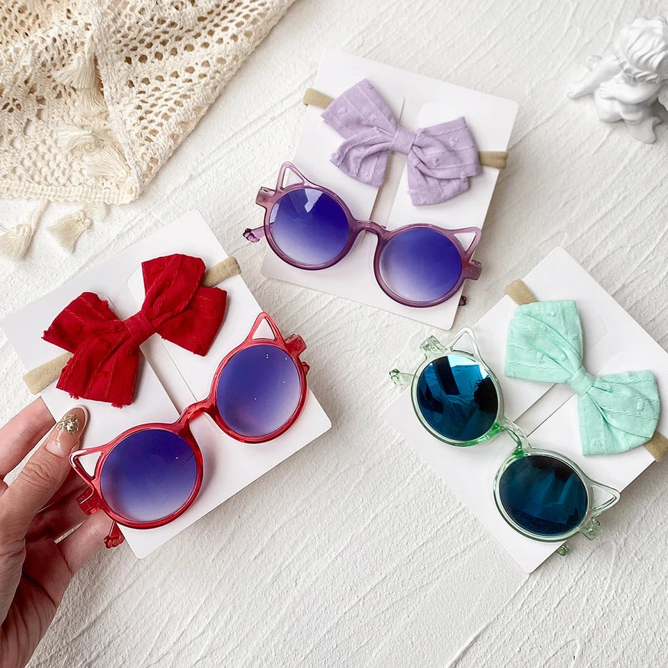2Pcs/Pack lentes de sol y moño a juego para niños, niñas, toddlers y bebés.