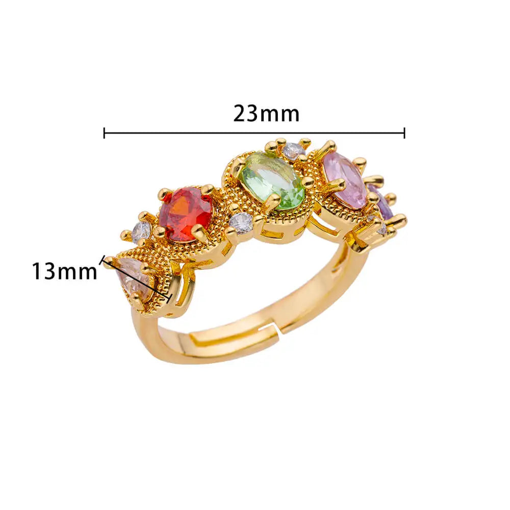 Anillo ajustable de acero inoxidable con circonitas en forma de gota de agua