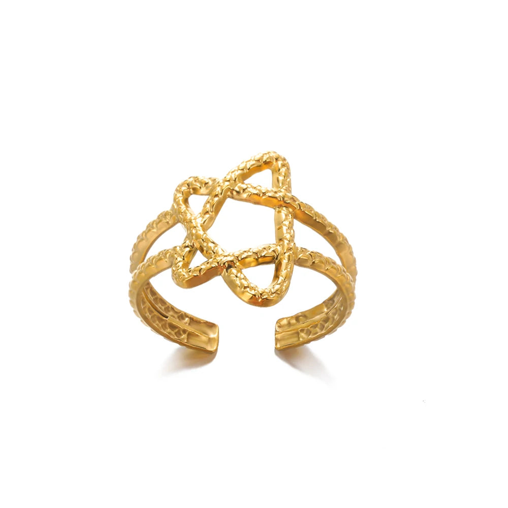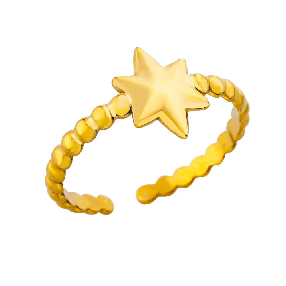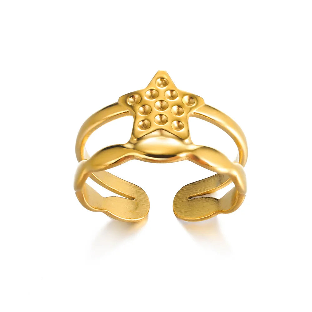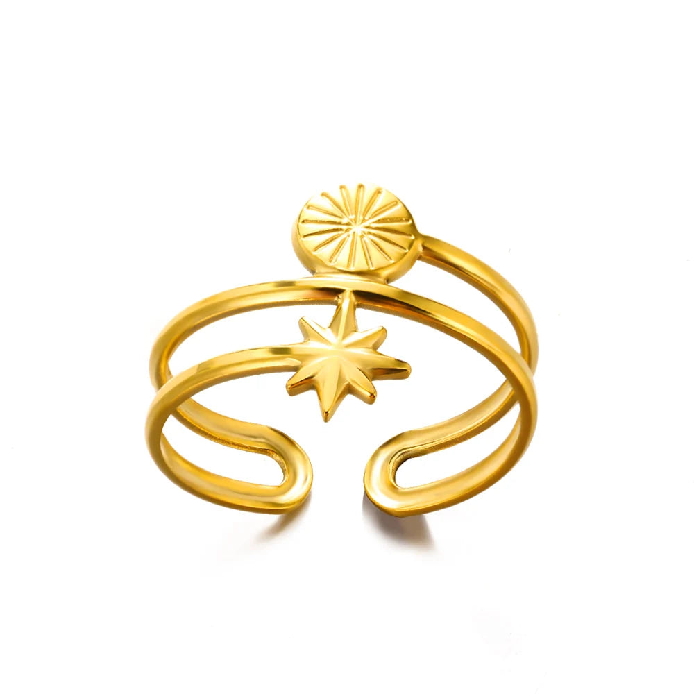 Anillo de acero inoxidable dorado con flor de estrella y ópalo