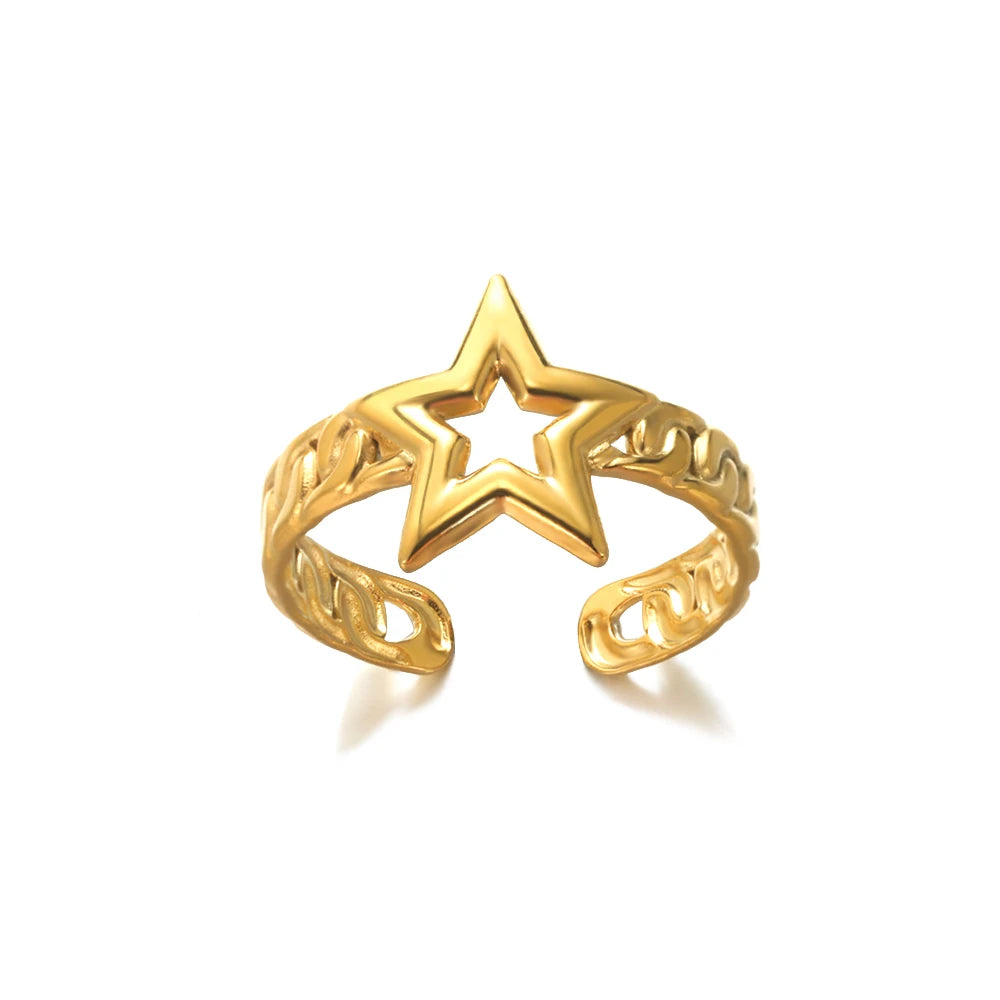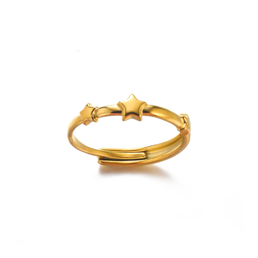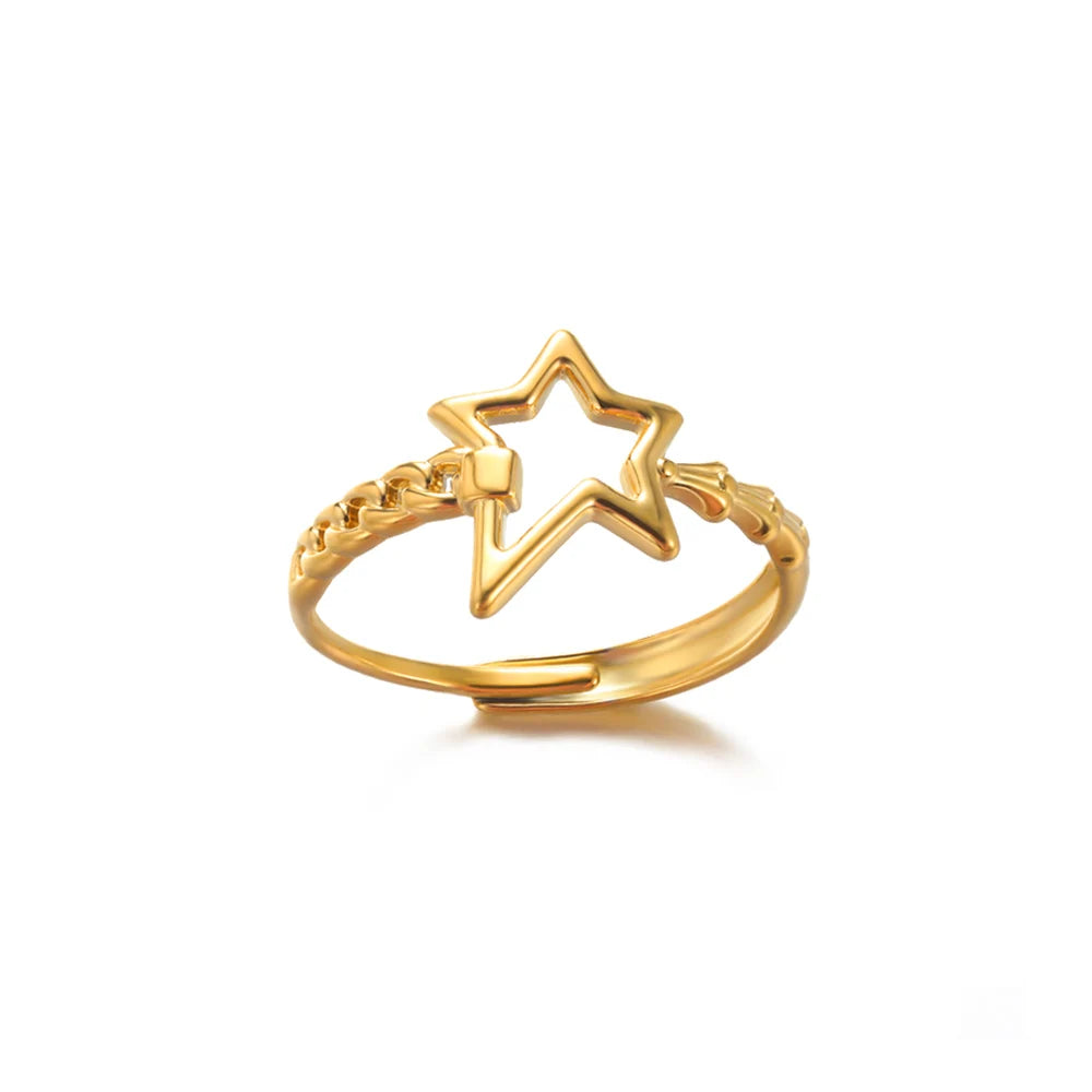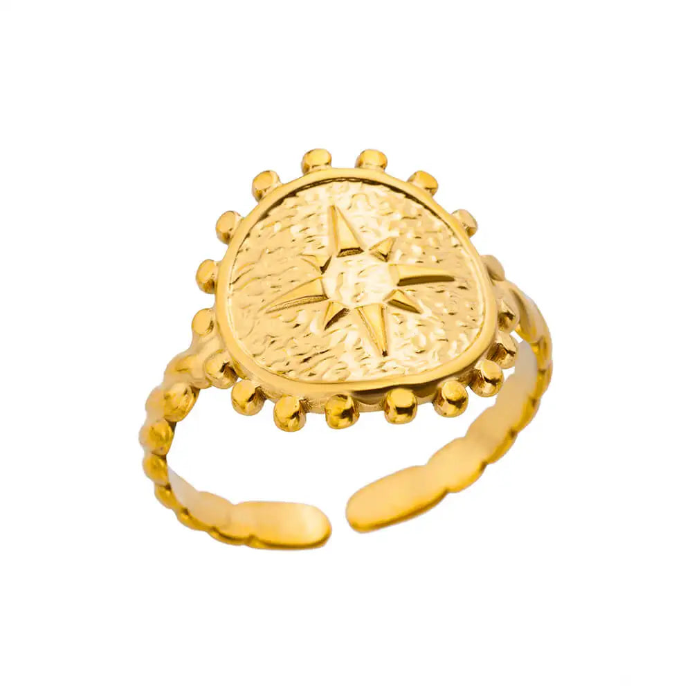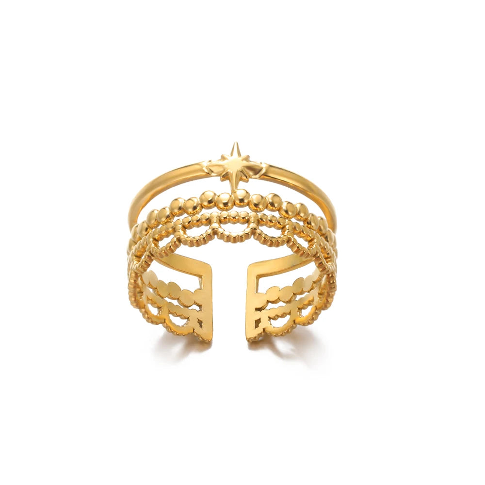 Anillo de acero inoxidable dorado con flor de estrella y ópalo