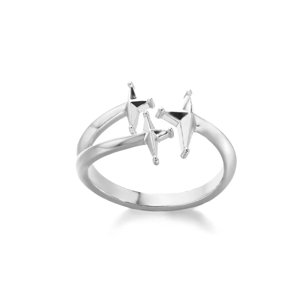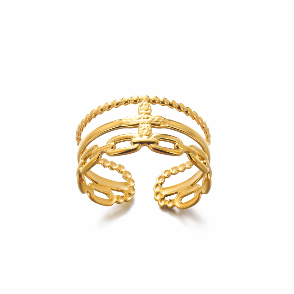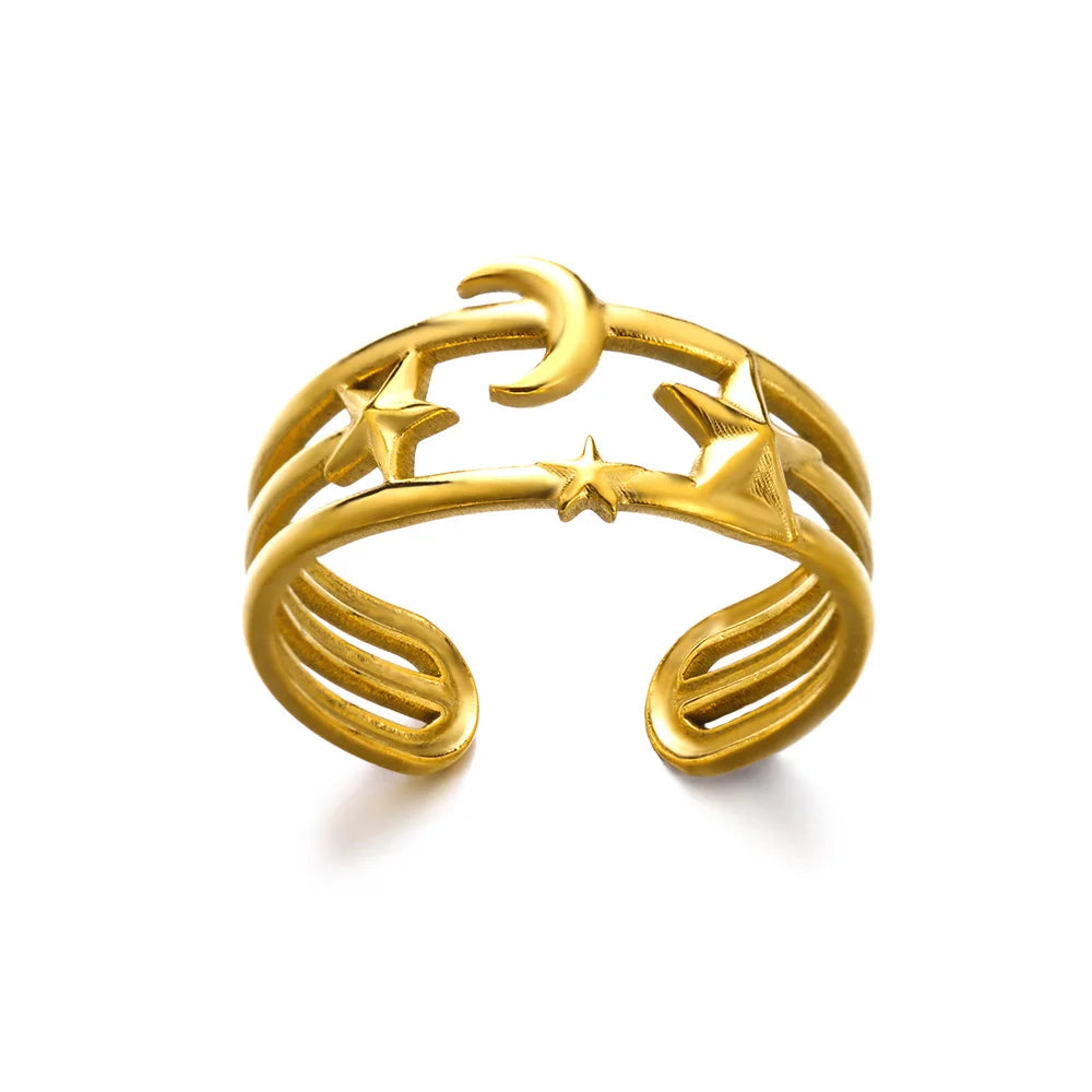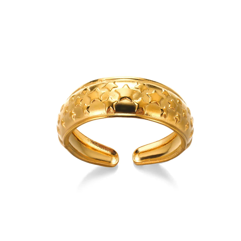 Anillo de acero inoxidable dorado con flor de estrella y ópalo