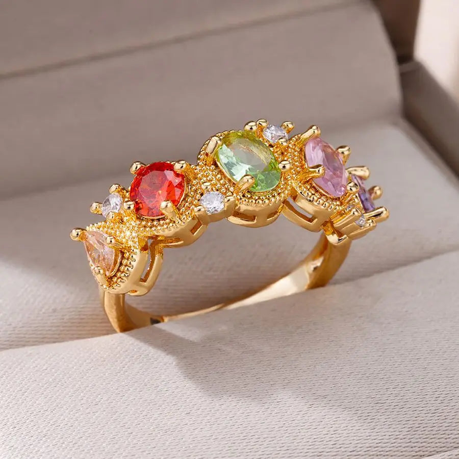 Anillo de acero inoxidable multicapa con circonitas de colores