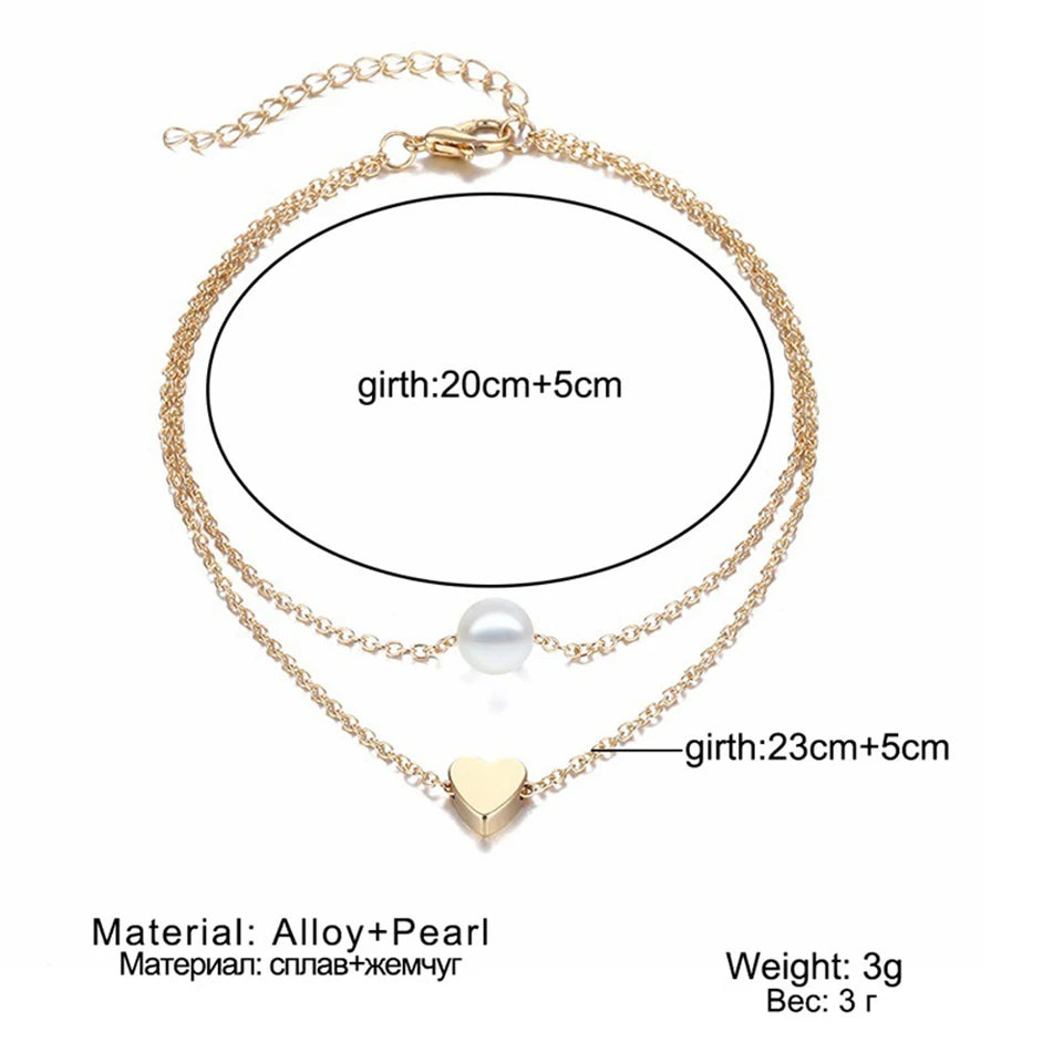 Tobillera multicapa sencilla con forma de corazón para mujer